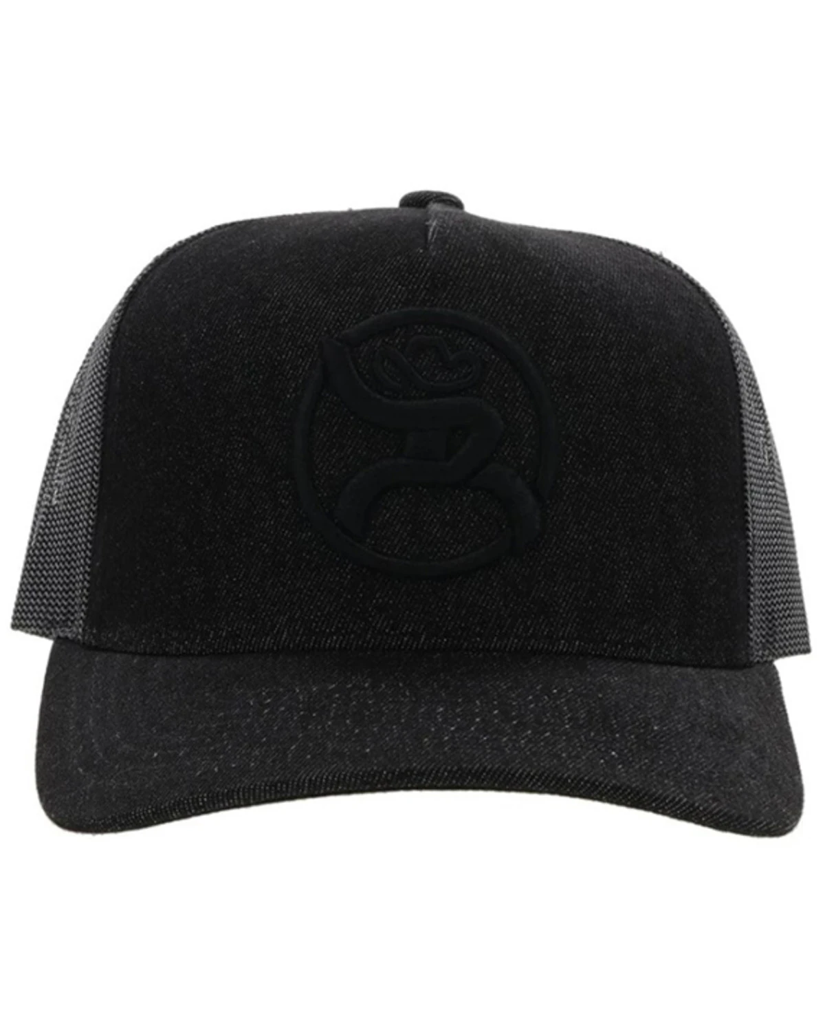 - Allover black with black circle logo patch on front