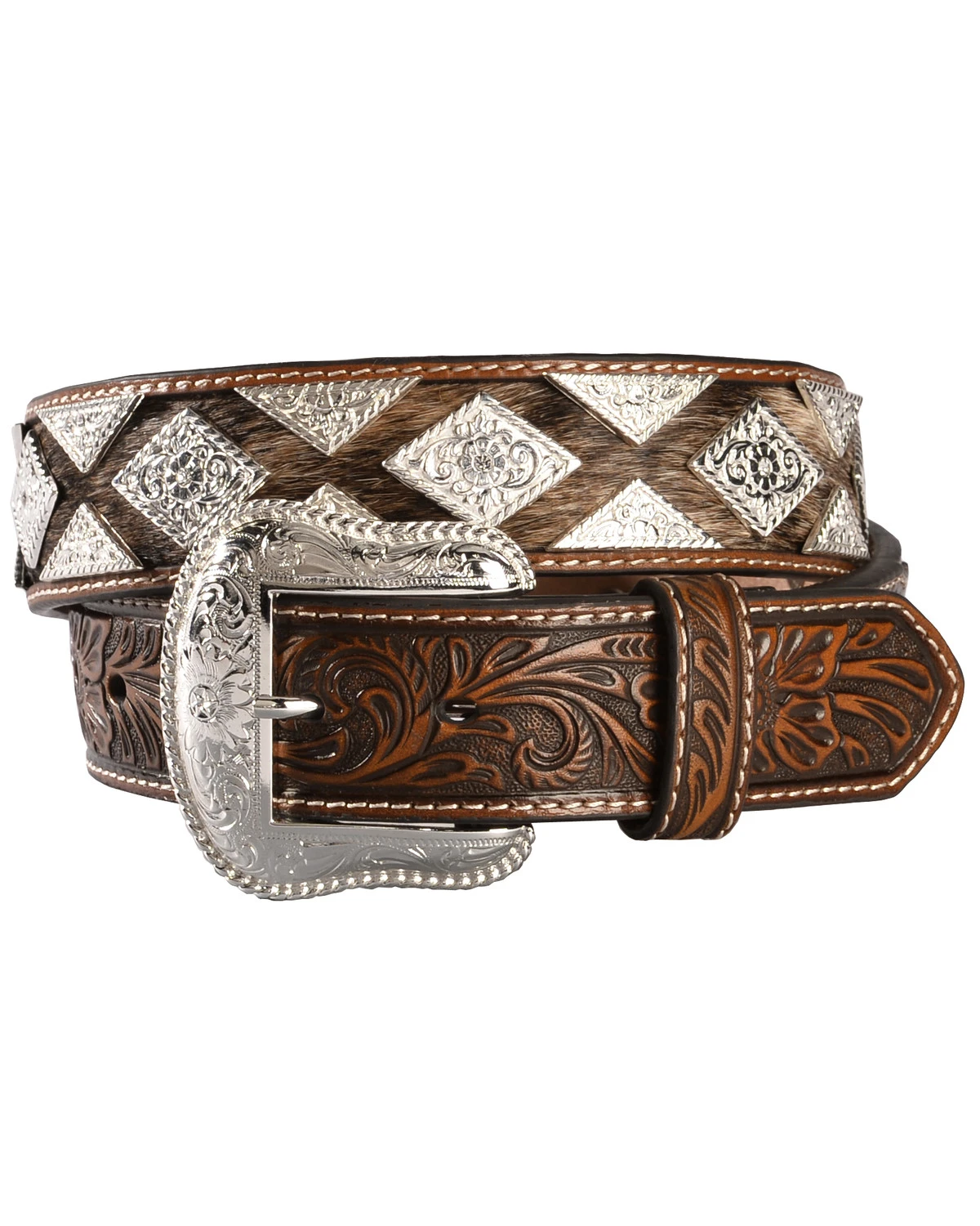 - Diamond-shaped concho accents